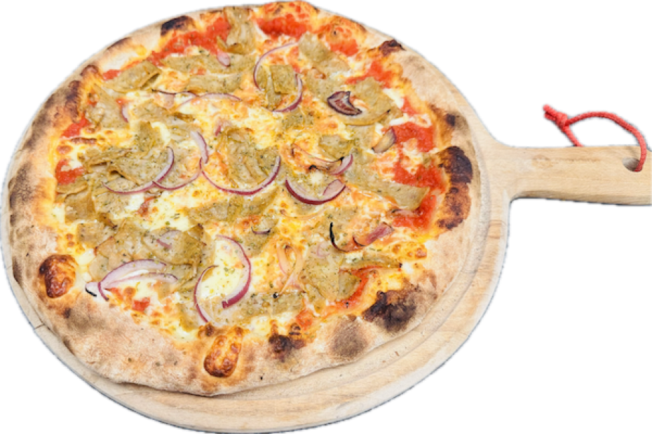 Tomate, mozzarella Fiore di latte, viande kebab, oignons, origan.