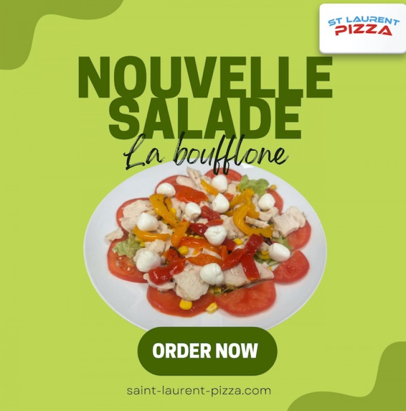 Salade, tomates, poivrons, maïs, poulet, bille mozzarella au lait de bufflonne.